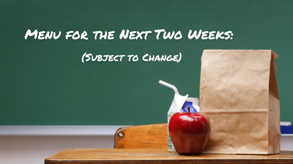 Lunch Menu Week of February 9th: Monday, Feb 9th: Pulled Pork Sandwich, Veggie, Fruit, Milk Tuesday, Feb 10th: Walking Taco, Veggie, Fruit, Milk Wednesday, Feb 11th: Ham & Cheese Sandwich, Veggie, Fruit, Milk Thursday, Feb 12th: Hot Dog, Veggie, Fruit, Milk Friday, Feb 13th: Cheese & Chicken Quesadilla, Veggie, Fruit, Milk Lunch Menu Week of February 16th: Monday, Feb 16: No […]
