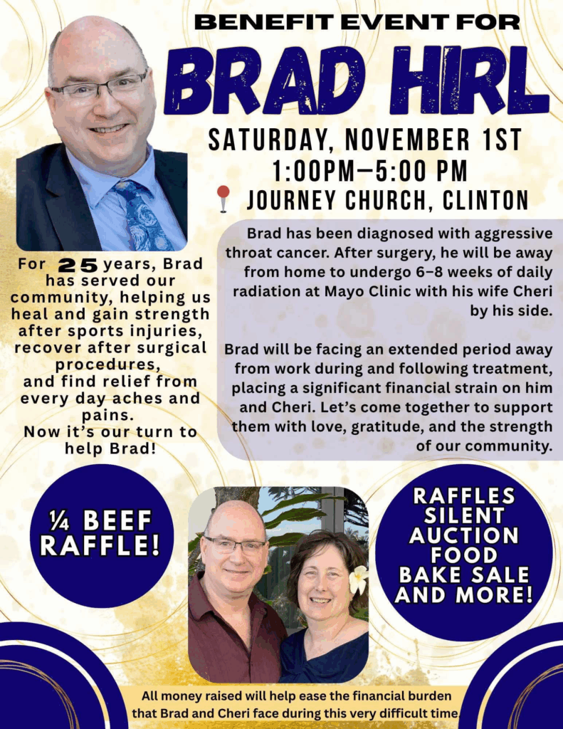 Please join us in supporting a member of our Unity Family, Brad Hirl, at a benefit event on Saturday, November 1st, from 1:00–5:00 p.m. at Journey Church in Clinton. Brad has been diagnosed with aggressive throat cancer and will be undergoing several weeks of radiation treatment at Mayo Clinic. After 25 years of helping others heal and […]