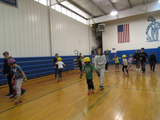 In P.E., students do a wide variety of activities including roller skating, archery, jump roping, and do a semi-annual physical fitness run as well participate in other group activities in the gym throughout the year. In 5th/6th grade, P.E. classes also go off-site to engage in swimming and tennis during the year.