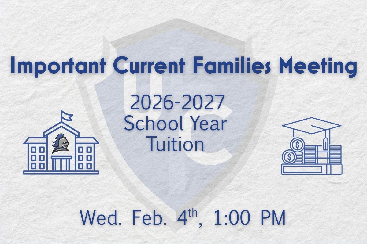 Join us at 1:00 PM in the school gym (west side bleachers) to discuss tuition for the 2026-2027 school year. The school board remains committed to sharing important information and partnering with you, even during these busy seasons. We completely understand that most days are incredibly busy for working families, especially right now with schedules full of athletics, scholastic bowl, and drama practices. Because of this, the meeting will be recorded and made available to all families shortly after it concludes to ensure you have access to this update at a time that works best for your schedule.